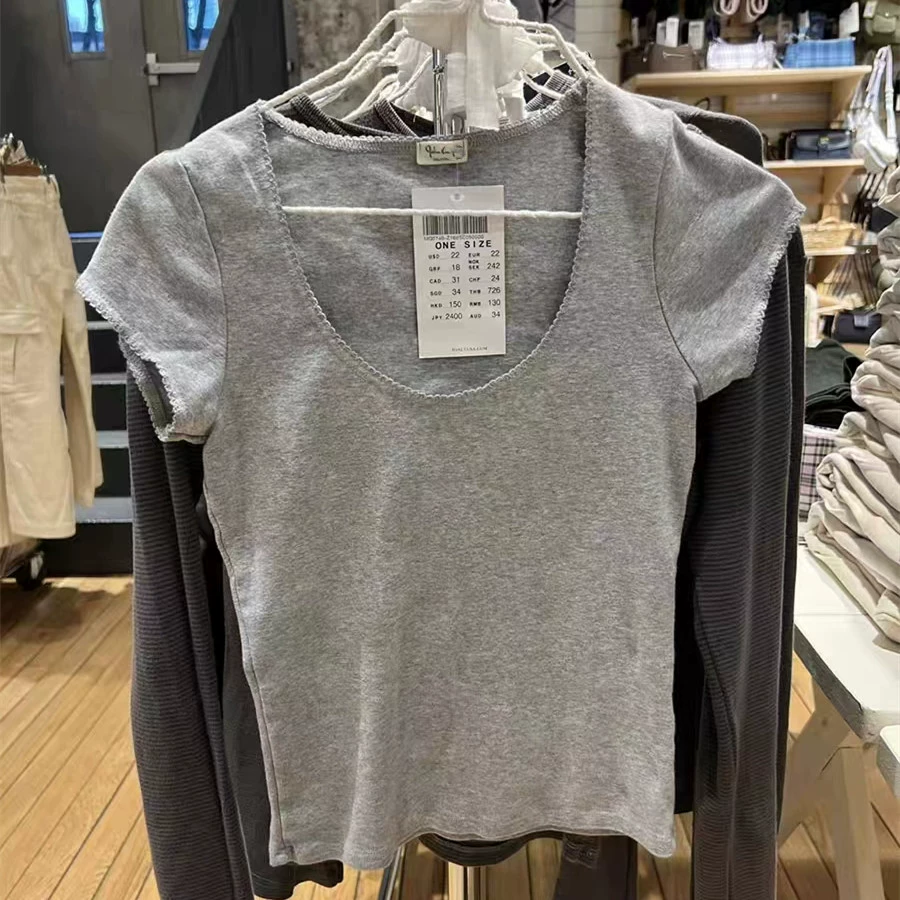 BM lace pure cotton short sleeves make you look slim and slim Brandy