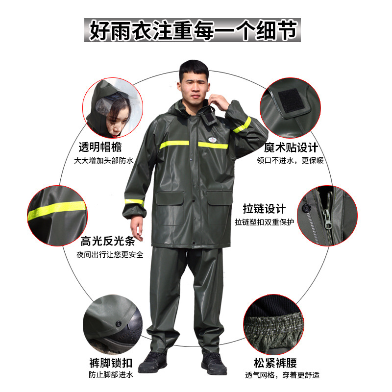 0WYV raincoat rain pants suit men’s thickened beef tendon adult waterproof reflective split lightweight breathable motorcycle riding