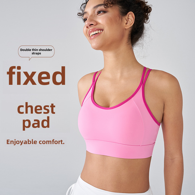 Sports underwear women’s thin shoulder strap contrast color vest fixed integrated cup quick-drying fitness clothes running yoga beauty back bra