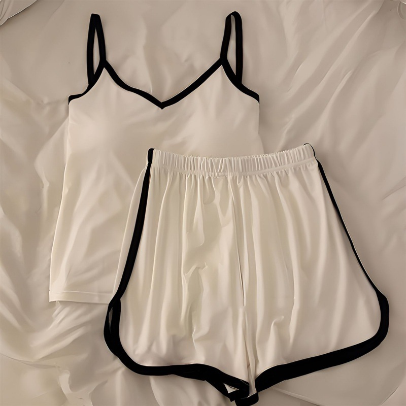 Ins Korean Style Cool Modal Pajamas Women’s Summer Sling Vest with Chest Pad Simple Thin suit Home Clothes