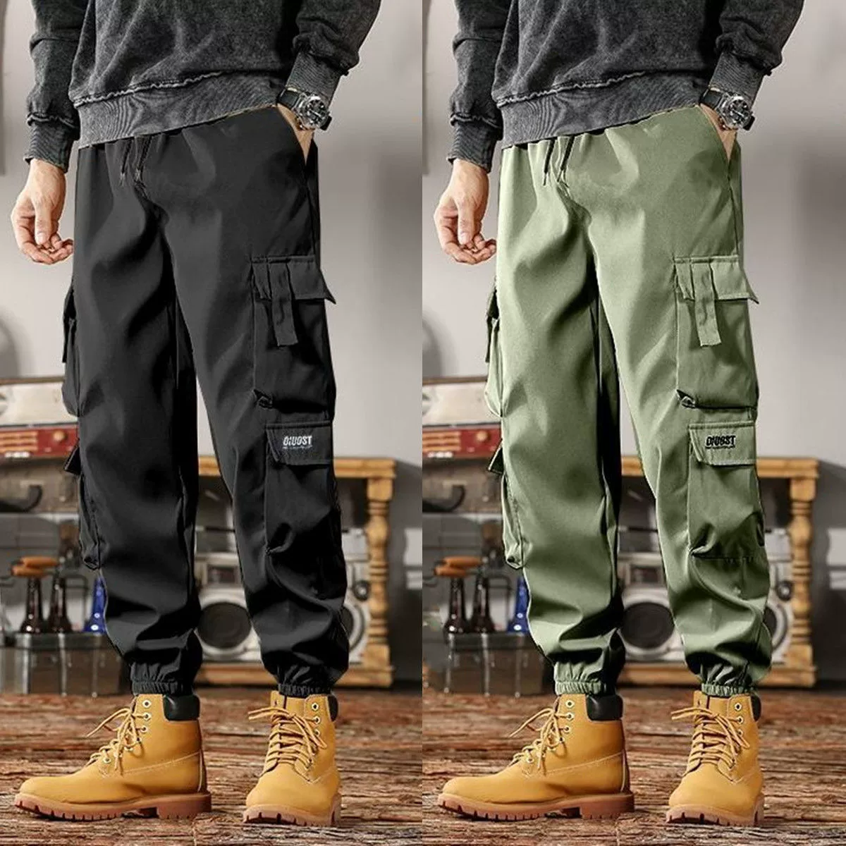 Beige High-Waisted Joggers.