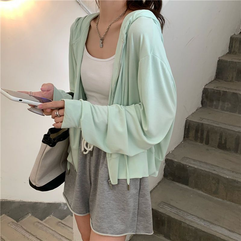 Summer Ice Silk Breathable Sunscreen Clothing for Female Students Korean-style Loose Fashionable Thin Outer Wear Zipper Jacket