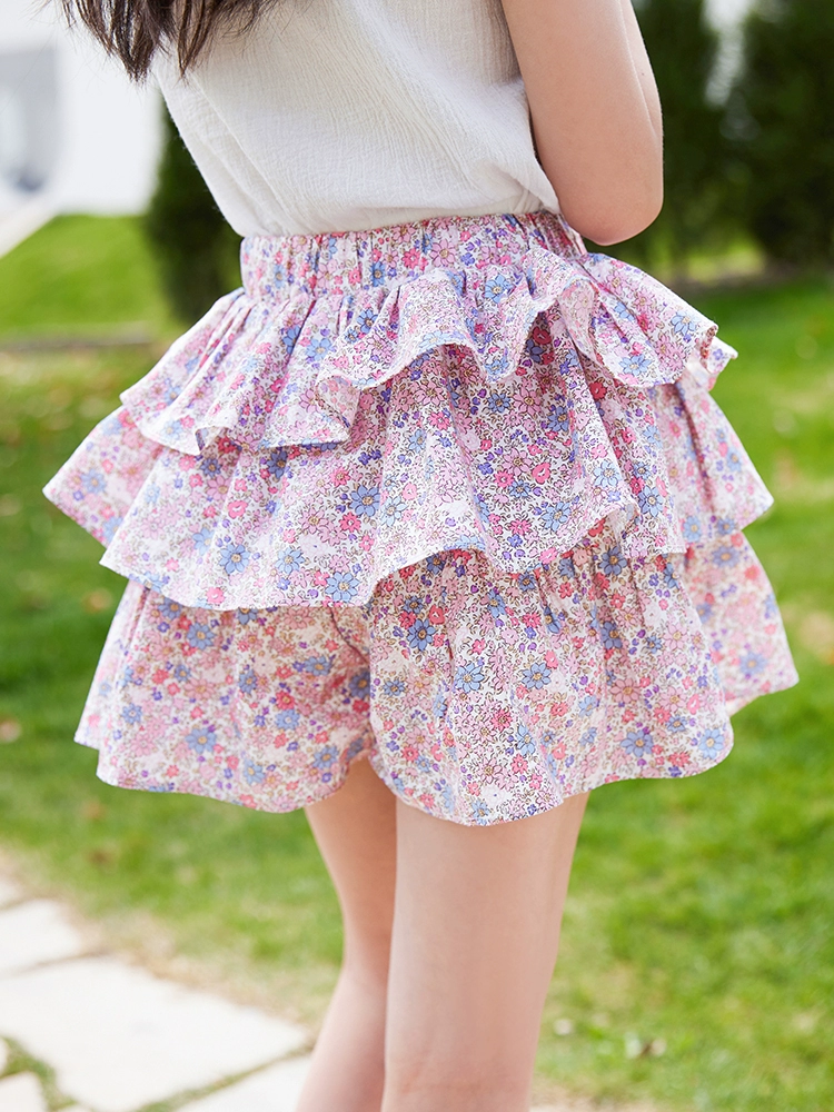 Girls’ Skirts Summer thin cotton crushed flower shorts Children pleated skirt 2025 new all -cotton big children cake skirt