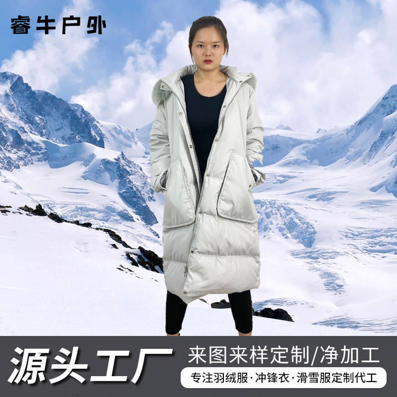 White Duck Down Medium and Long Fashion Down Jacket Ladies New Thickened Cold-proof Removable Large Wool Collar Down Jacket Customized