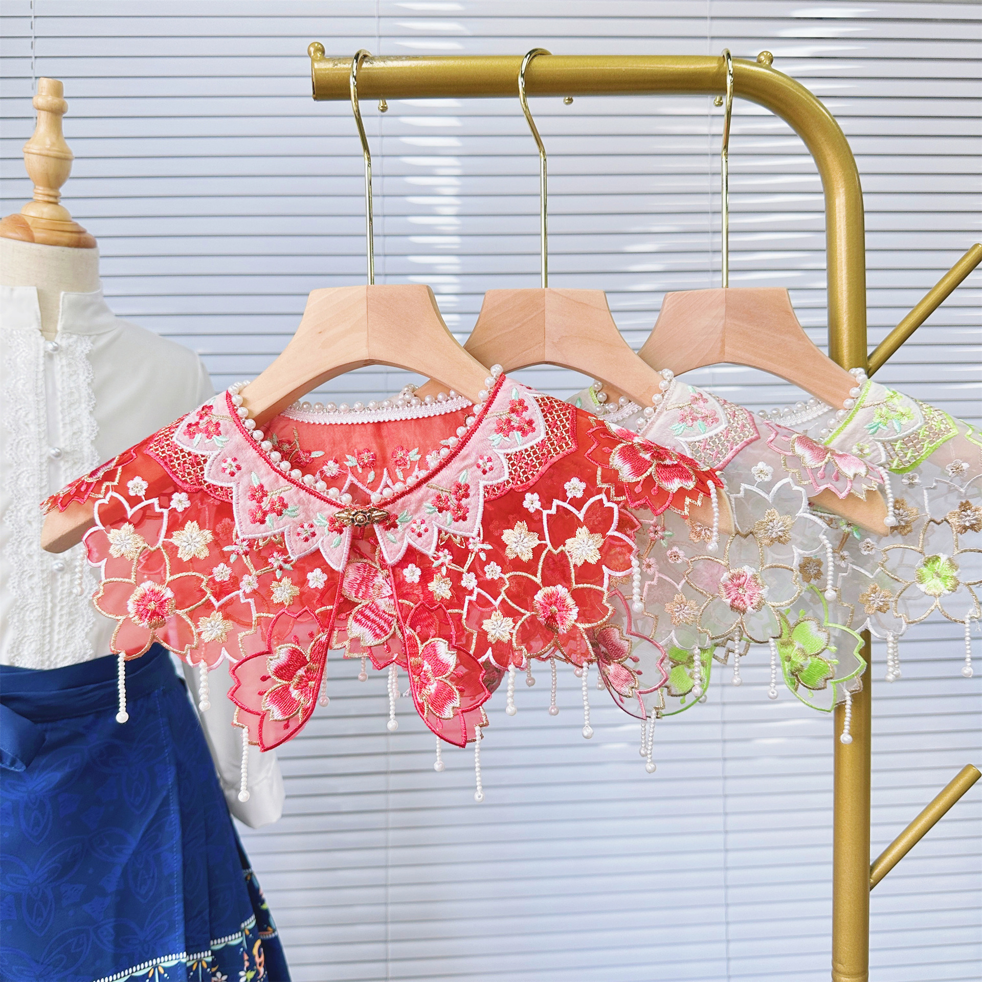 Cherry blossom cloud shoulder ancient costume Hanfu embroidery piece yarn bottom embroidery accessories gold thread non-adhesive children’s skirt children’s adult style