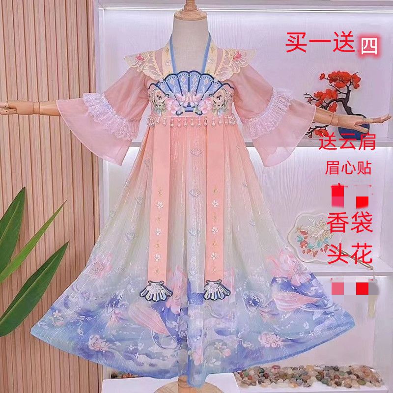 Hanfu Girl’s Summer 2024 New Children’s Ancient Chinese Style Super Fairy Tang Suit dress Cherry Blossom Princess Spring and Summer Suit