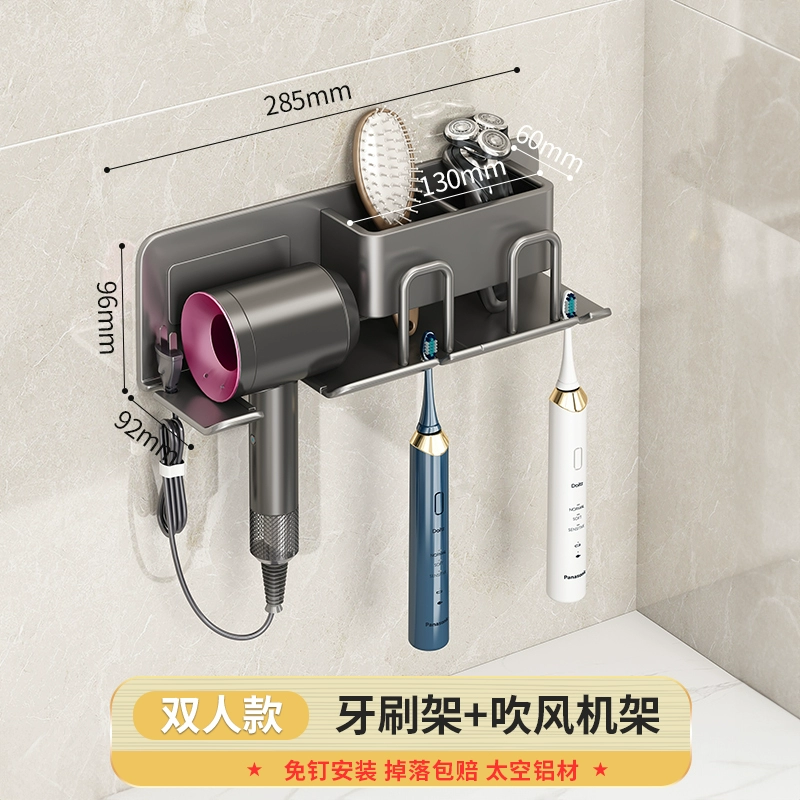 Youqin Gun Ash Hair Dryer Wall-mounted Toothbrush Rack