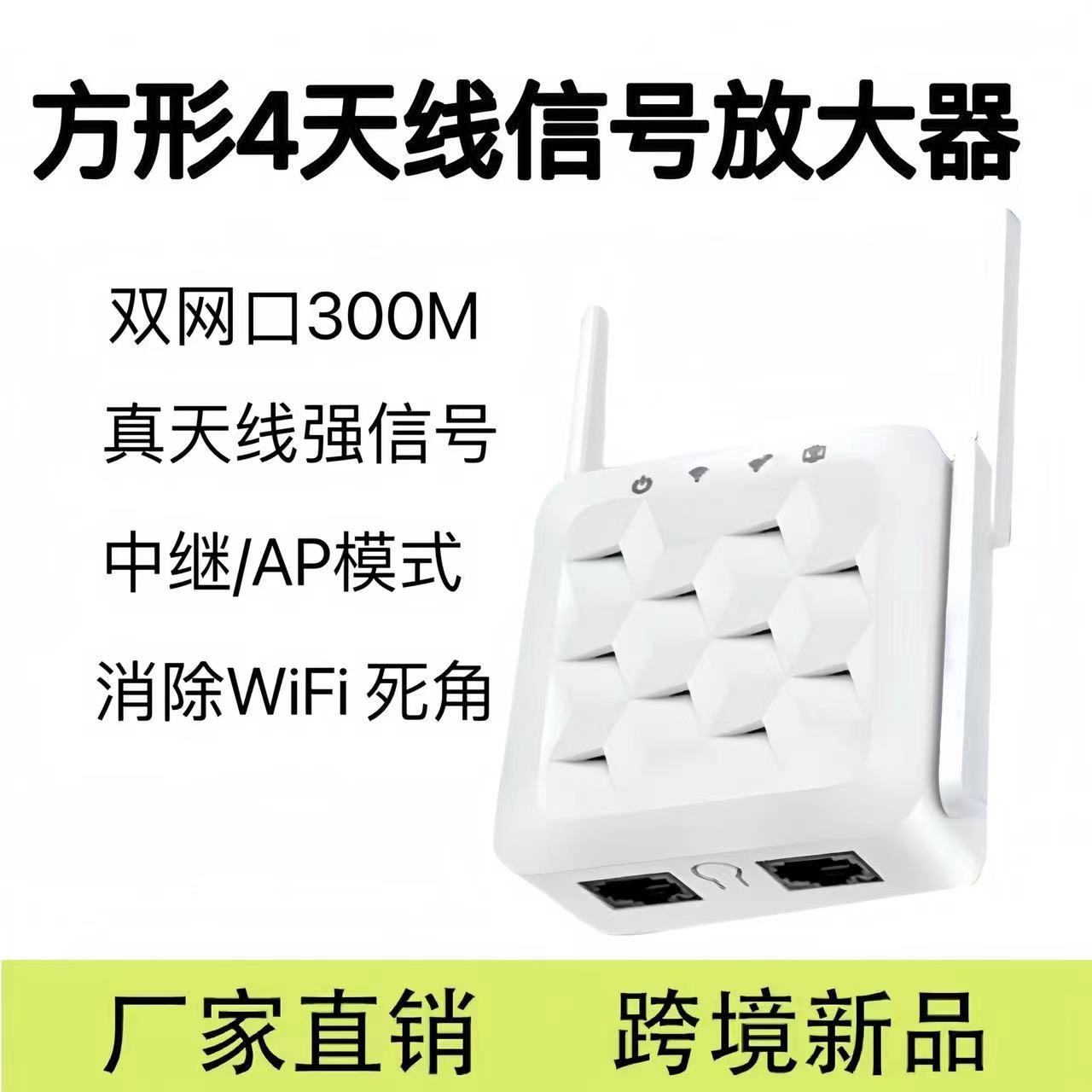 Square Repeater 4 Antenna WiFi Signal Amplifier Enhancement Amplifier Network Extender 300M