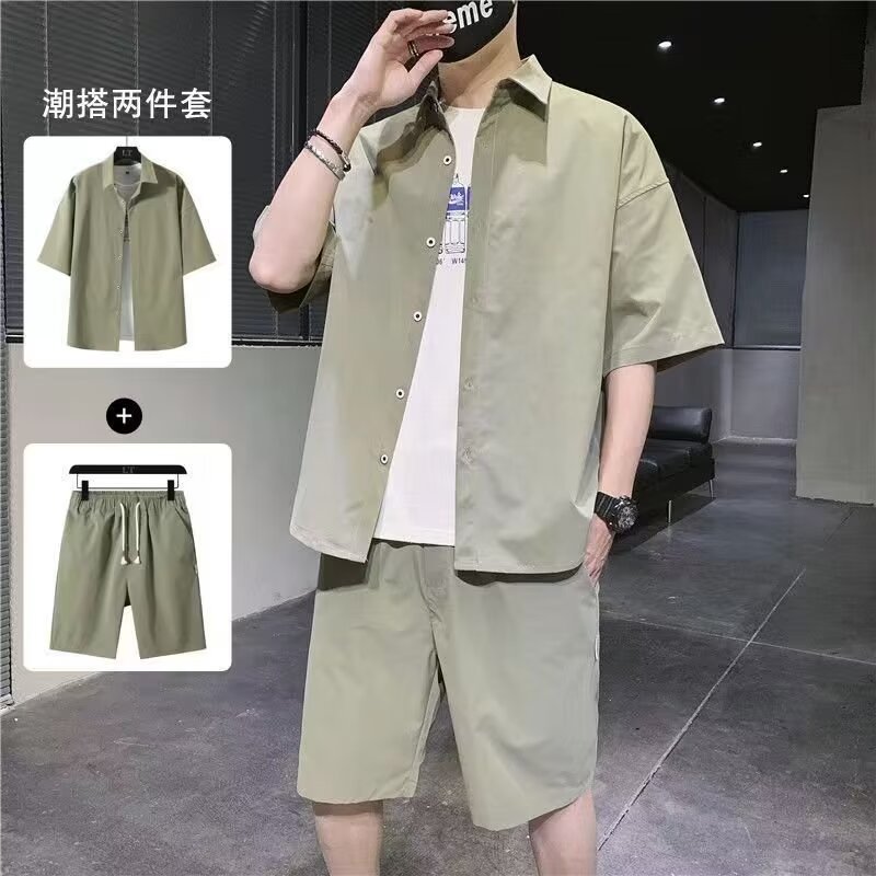Shirt Men’s Shorts Short-sleeved Two-piece Summer Fashionable Loose Suit Men’s Fashionable Handsome Casual Set Cross-border Fashionable