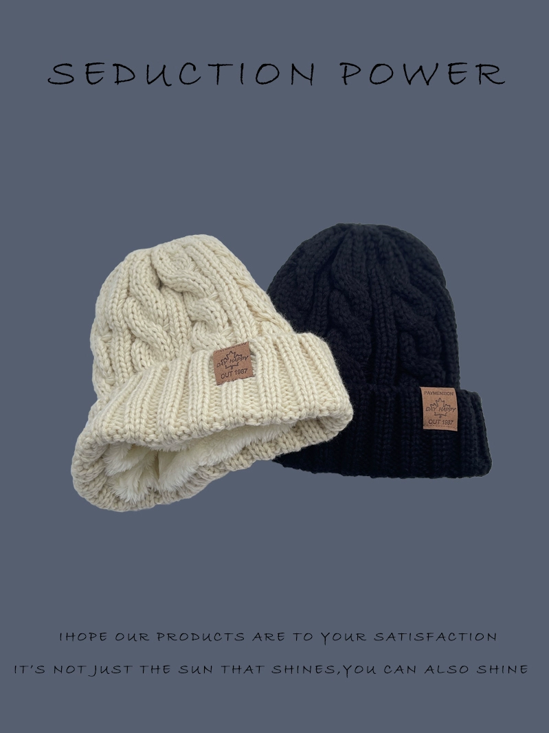 Plush woolen hat for men in winter Korean style casual warm and versatile thickened twist coarse knitted windproof ear protection hat for women