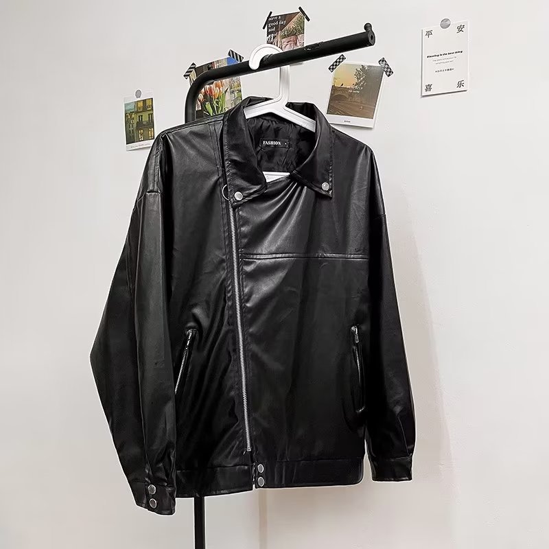 2023 New Spring and Autumn New Cocoon-shaped Contour Motor Car Style Leather Jacket Coat Loose Jacket
