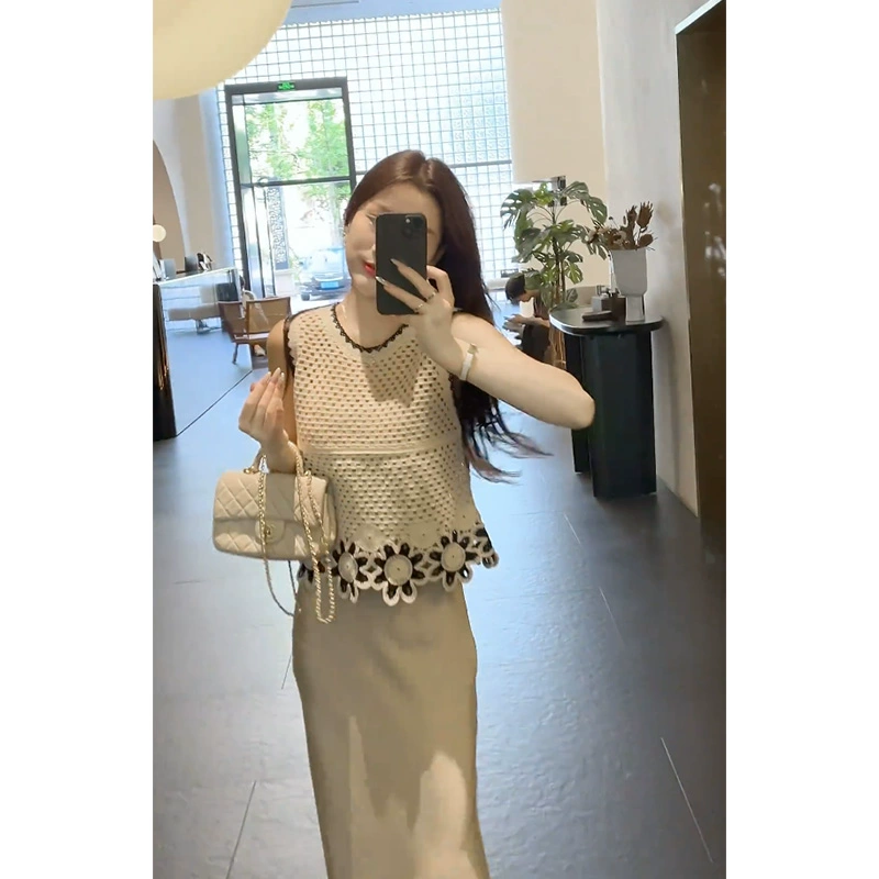 Chinese New Fashionable Flower Color Blade Vest Western Style Slim Look Loose Crewneck Pullover Sweater Women’s Sweater Vest
