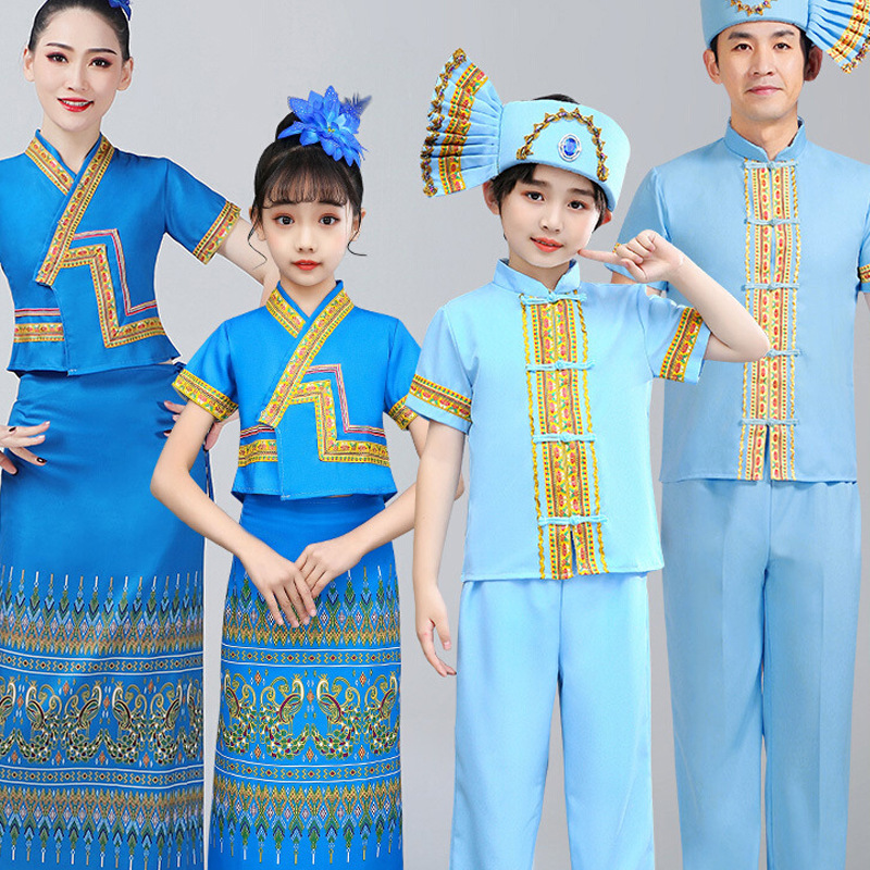 Xishuangbanna Children’s New Ethnic Dai Half-length Dress Costume Men’s and Women’s Dance Performance Costume Large Size Suit