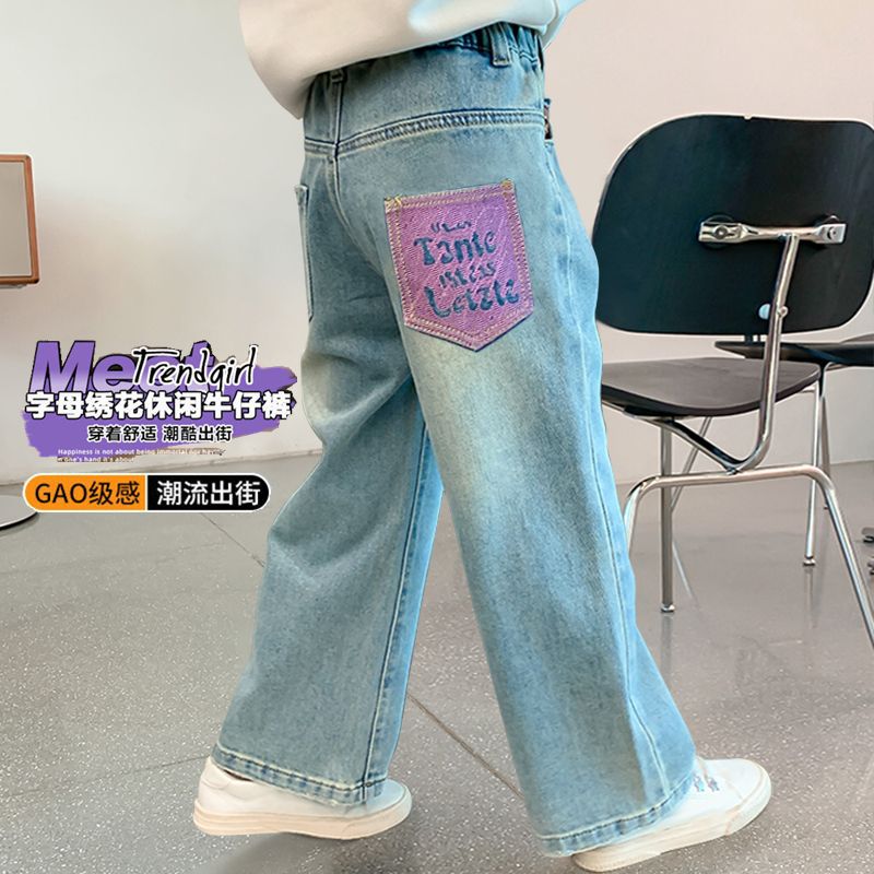 Girls’ Jeans Spring and Autumn New Style Girls’ Middle and Big Kids Casual Western Style Straight Student Wide Leg Pants Autumn and Winter Children’s Pants