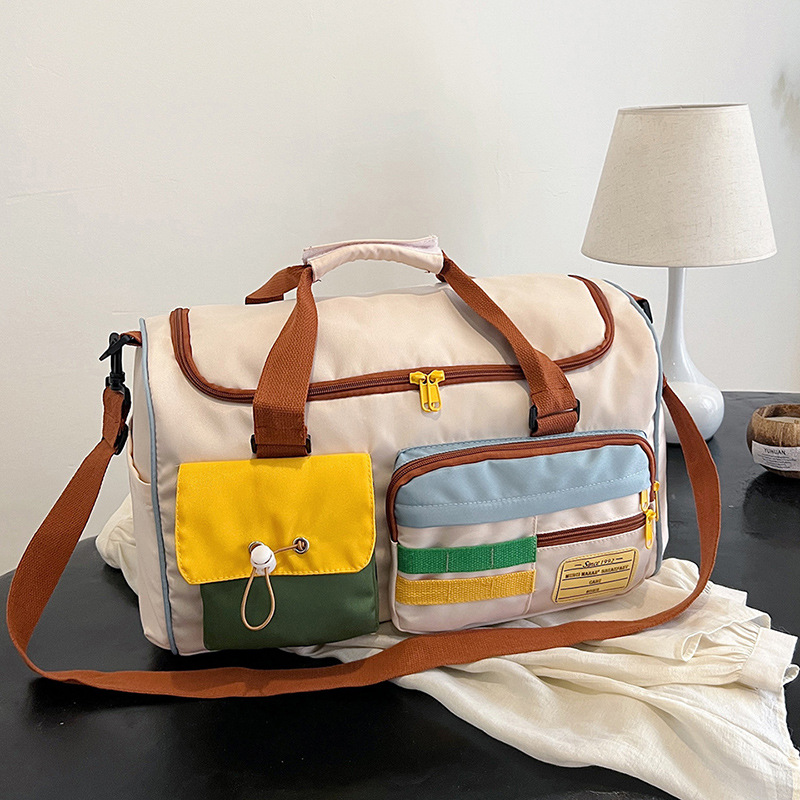 Contrast Color Leisure Sports Fitness Bag Women’s Large Capacity Travel Portable Crossbody Luggage Bag for Short-distance Business Travel Bag for Men
