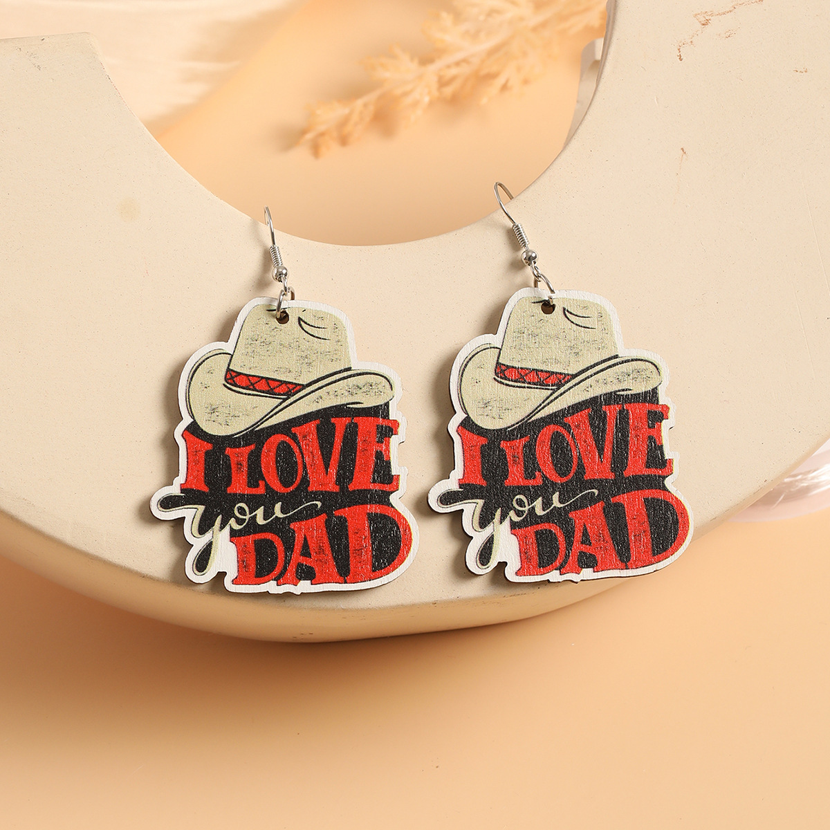 Cross-border foreign trade new American western style wooden earrings Superman Dad LOVEPAPA printed earrings