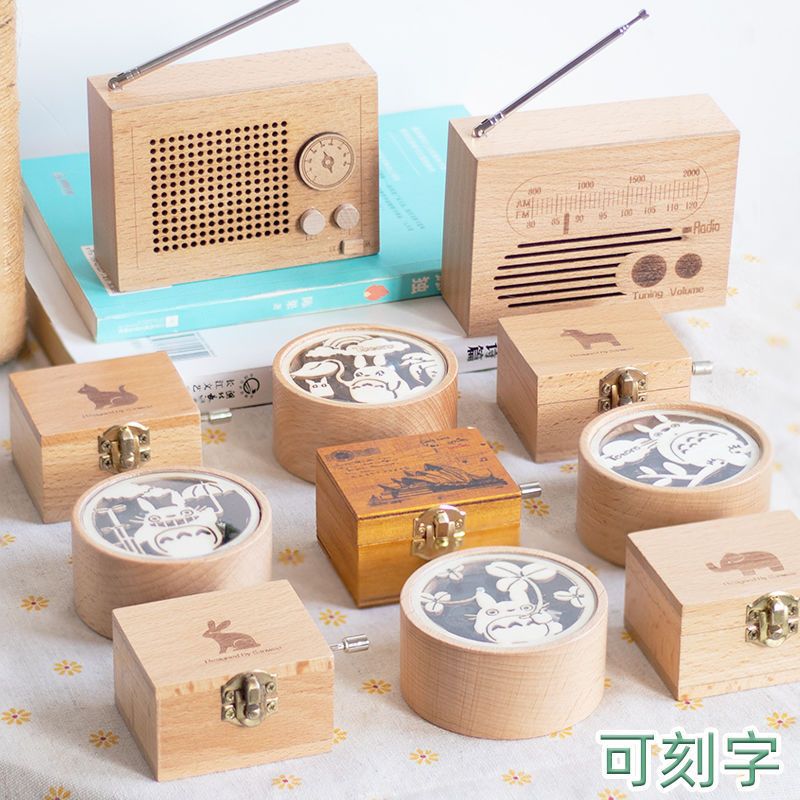 Music Box movement clockwork music box wooden rotating hand-cranked Sky City mini music box creative children male