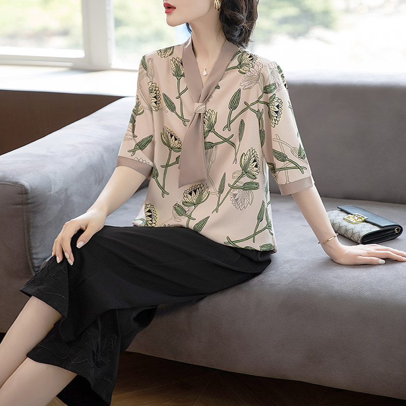 2024 new middle-aged mother fashion short sleeve suit middle-aged and elderly 40-year-old female foreign temperament clothes chiffon summer clothes