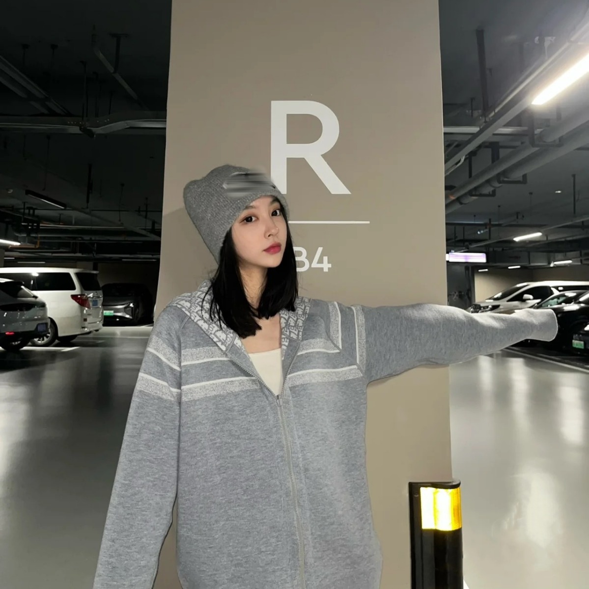 Nanyou 23 autumn and winter fashionable gray hooded sweater women’s new Korean style loose bf lazy style zipper cardigan coat