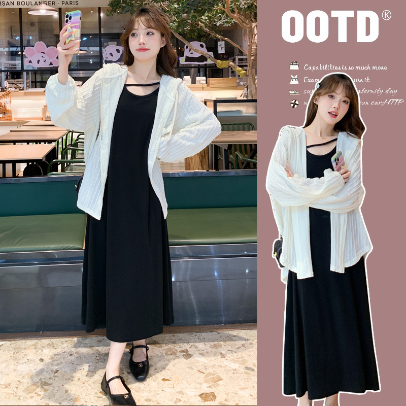 Maternity Dress 2023 Summer New Fashion Large Size Mid-length Shirt Dress Trendy Mom