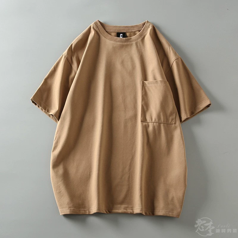 Foreign trade orders Summer men’s fashionable loose casual solid color versatile round neck single pocket short-sleeved T-shirt base