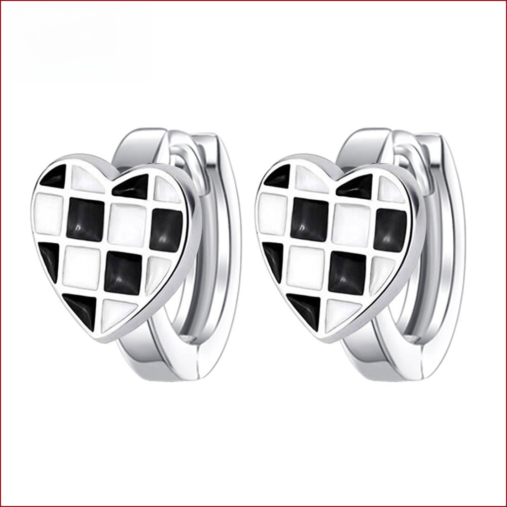 Douyin Live Chessboard Love Earrings Women’s Advanced Sense Plaid Ear Buckle Black and White Plaid Glue Elegant Earrings