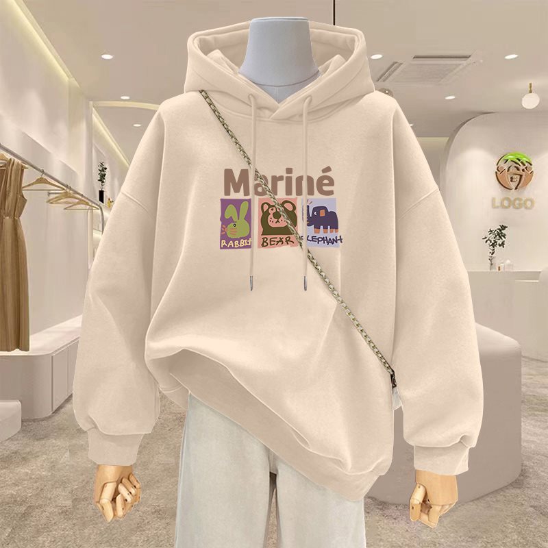 Spring 2024 New Cartoon Hooded apricot Sweatshirt Women’s Reinforced Thickened plus size Women’s Long Coat