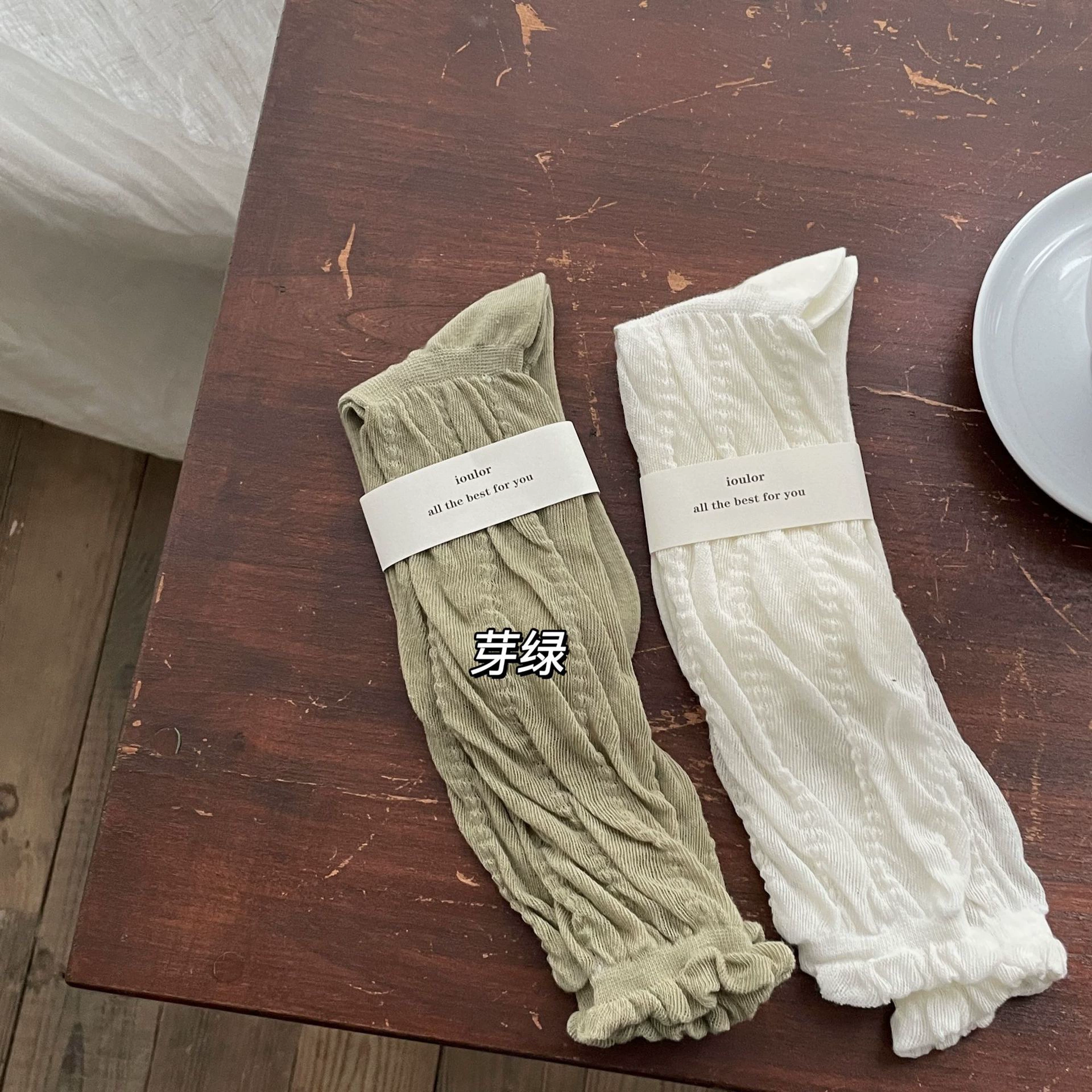 IOULOR sweet pleated pile socks spring and summer solid color mid-calf socks for women loose mesh breathable Japanese bubble socks