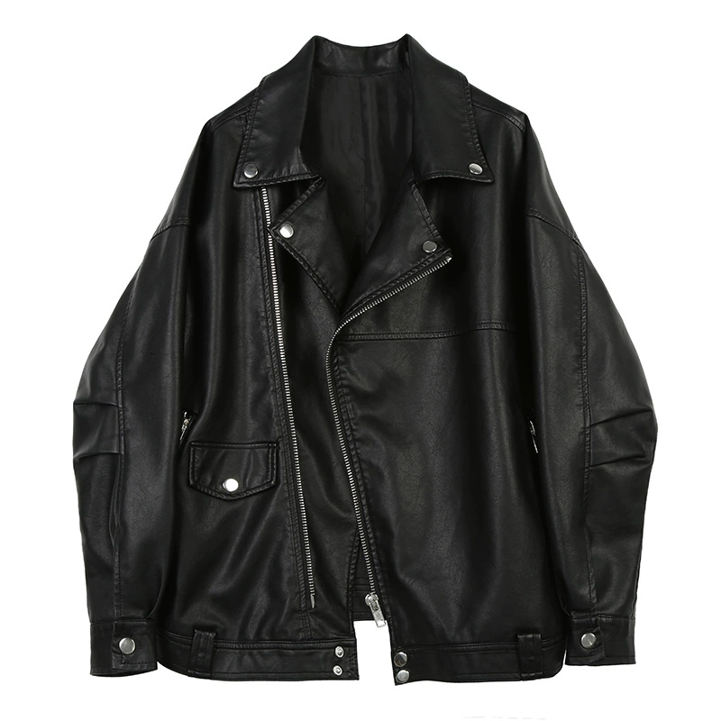 2024 new autumn retro cocoon silhouette motorcycle BF style leather jacket PU jacket oversize loose jacket