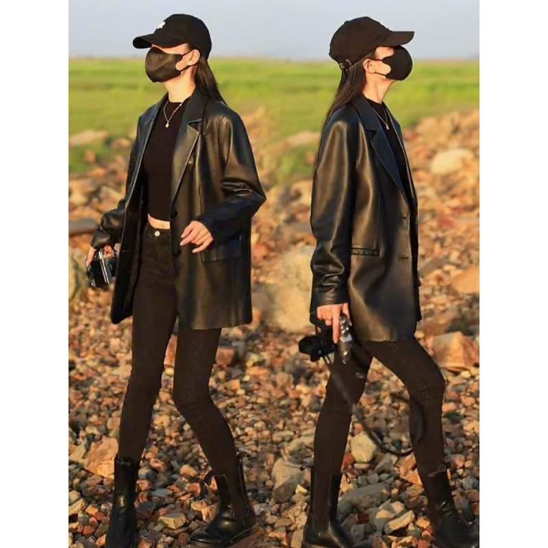 Casual Leather Jacket Women’s 2024 Spring and Autumn Korean-style Loose Fashionable Black Small Suit PU Jacket