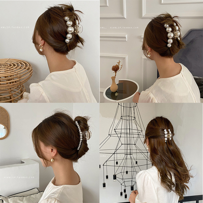 Advanced Sense New High-end Sense Elegant Pearl Grab Clip Back Head Clip Headwear Hairpin Women’s Hairpin Shark Clip