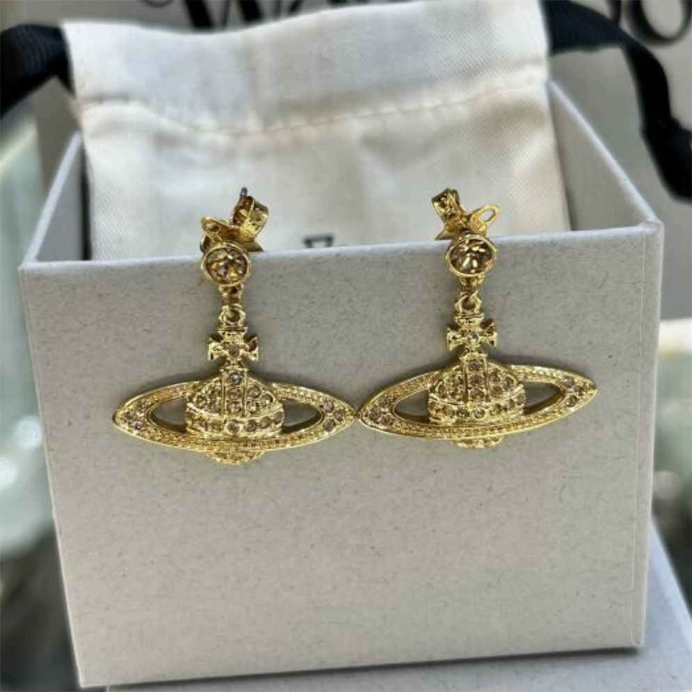 SUE Super Flash Drilling Long Drilling Tower Saturn Banquet earrings Personal versatile high -end earrings earrings