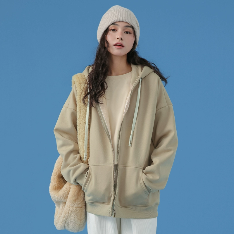 Thick hooded loose imitation sherpa zipper sweatshirt