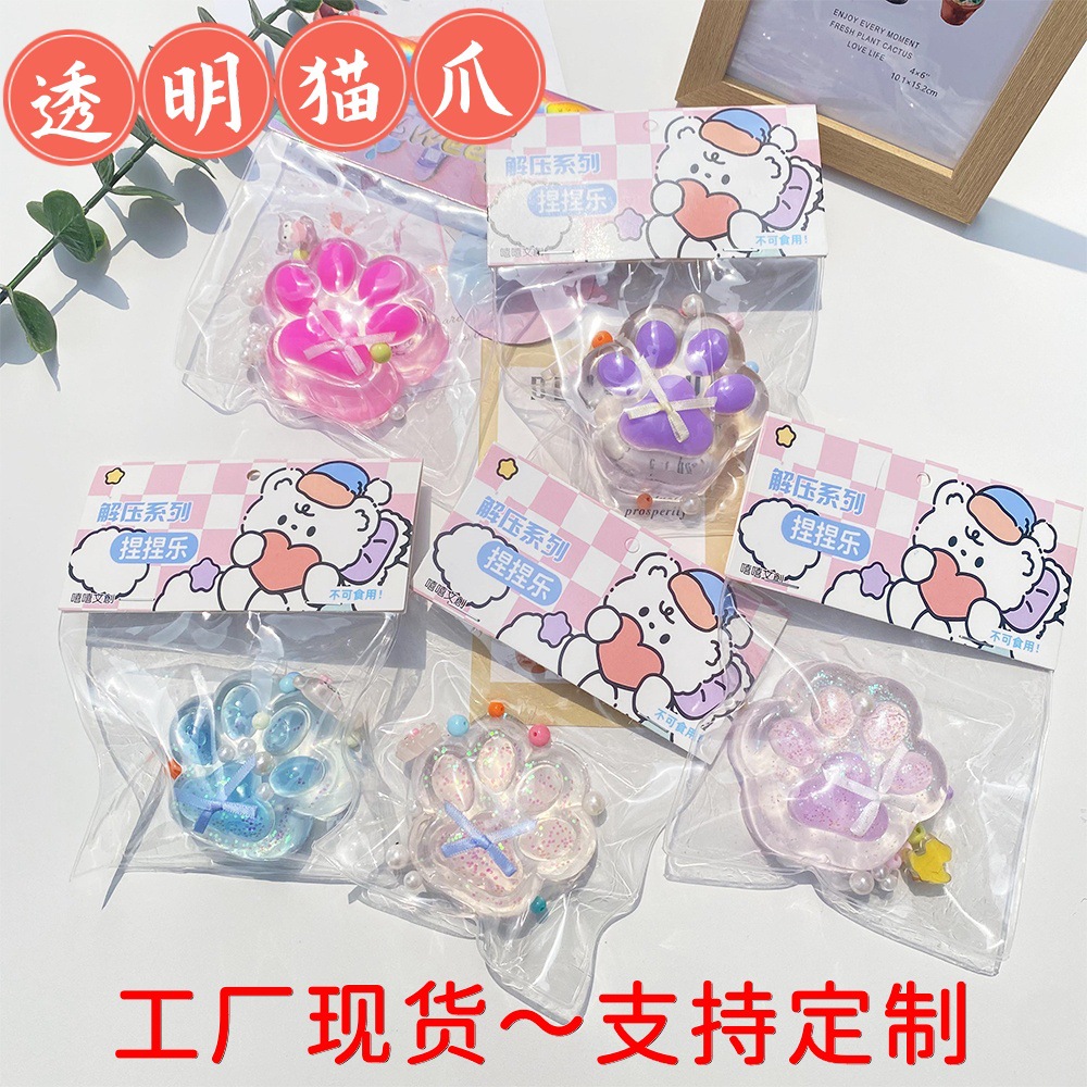 Crystal Transparent Cat’s Claw Pinch Music Decompression Toy Girl’s Large Soft Rubber Pinch Mud Sense Slow Rebound Decompression Artifact