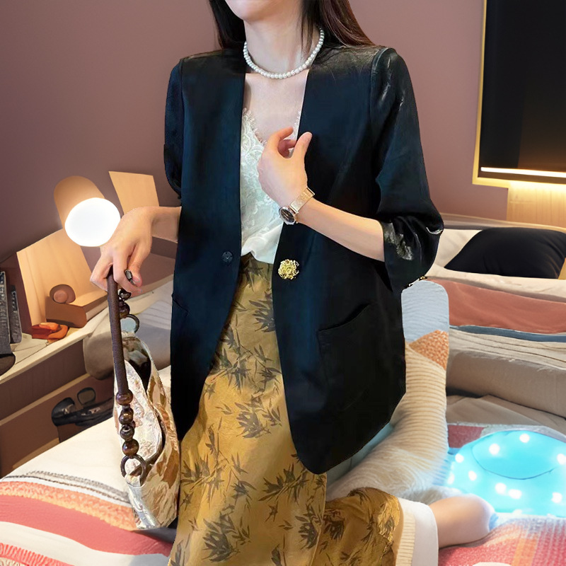Temperament Half Sleeve Acetic Acid Satin Suit Jacket Women’s 2024 New European Thin Casual High-end Sense Taste