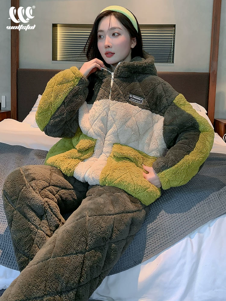 Girls’ Winter Coral Fleece Padded Pajamas Women’s Sweet Autumn and Winter Thickened Velvet Teen Home Clothes Padded Jackets