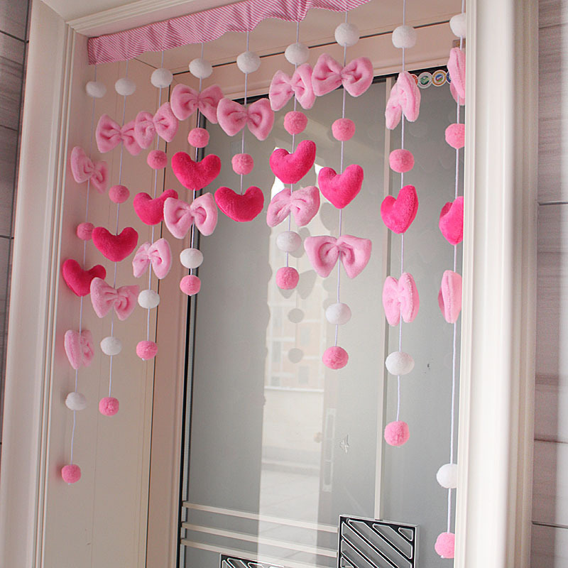 Colorful Love Room Door Hanging Curtain Partition Hanging Curtain Girly Heart Children’s Cute Pink Non-Punch Children’s Room