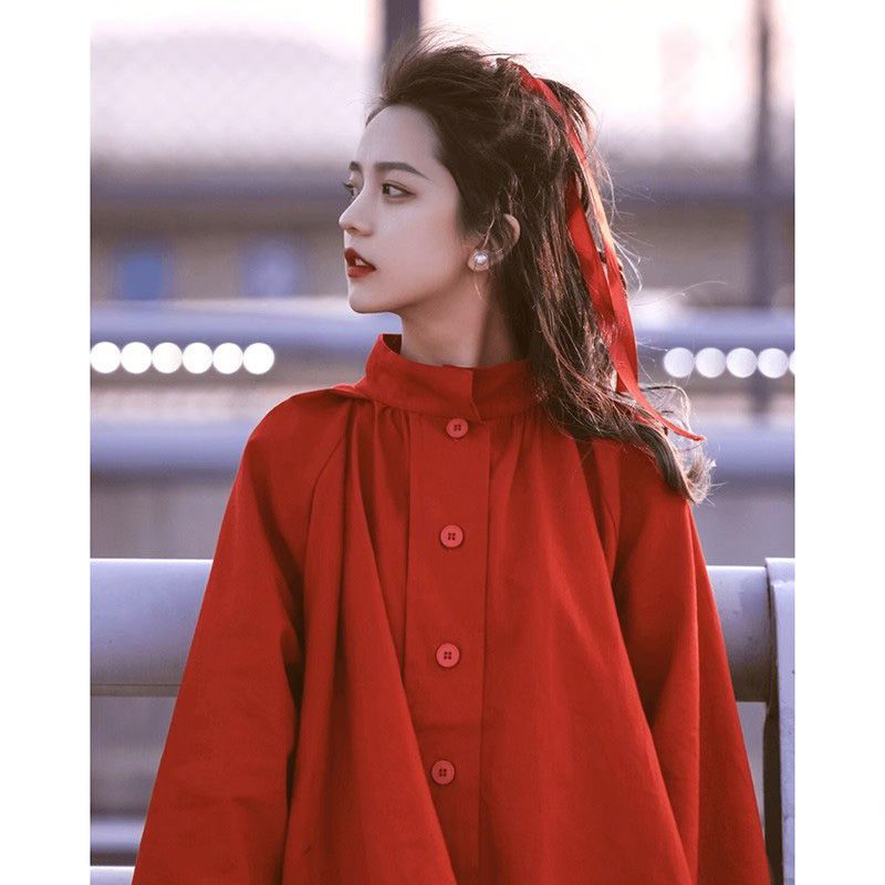 Cross-border Autumn Red Shirt Women’s Long-sleeved Hong Kong-style Design Sense Niche Doll Shirt 2024 New Puff Sleeve Chiffon