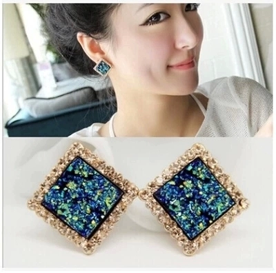Korean blue square large earrings for women, fashionable temperament, Korean version of Yiwu small jewelry, hypoallergenic ear buckle earrings