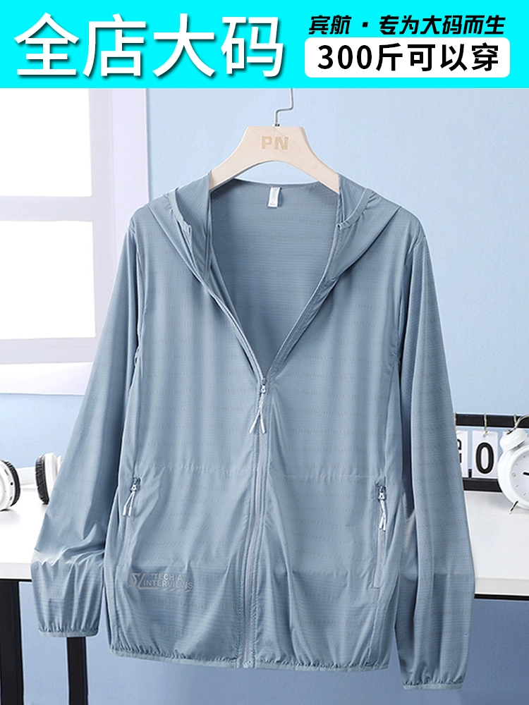 Ice silk large size sun protection clothing for men 300 pounds, light and breathable, summer weight increase, sun protection clothing, men’s fat jacket
