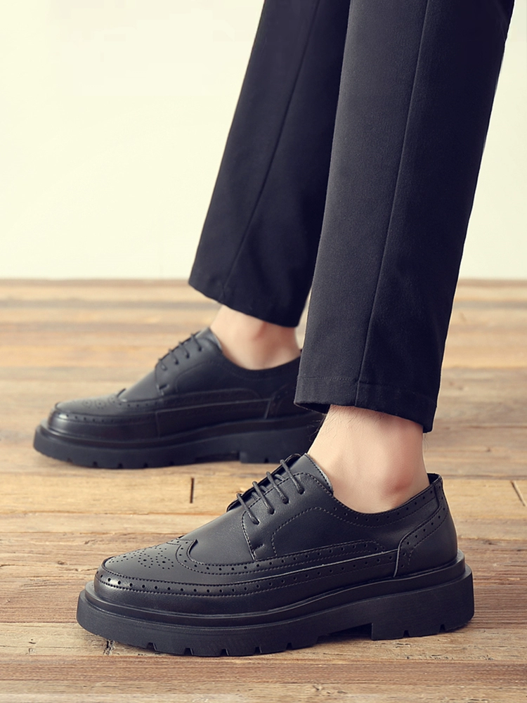 Leather shoes men’s leather business formal dress black wild casual Brock shoes British style Korean version thick young men’s shoes