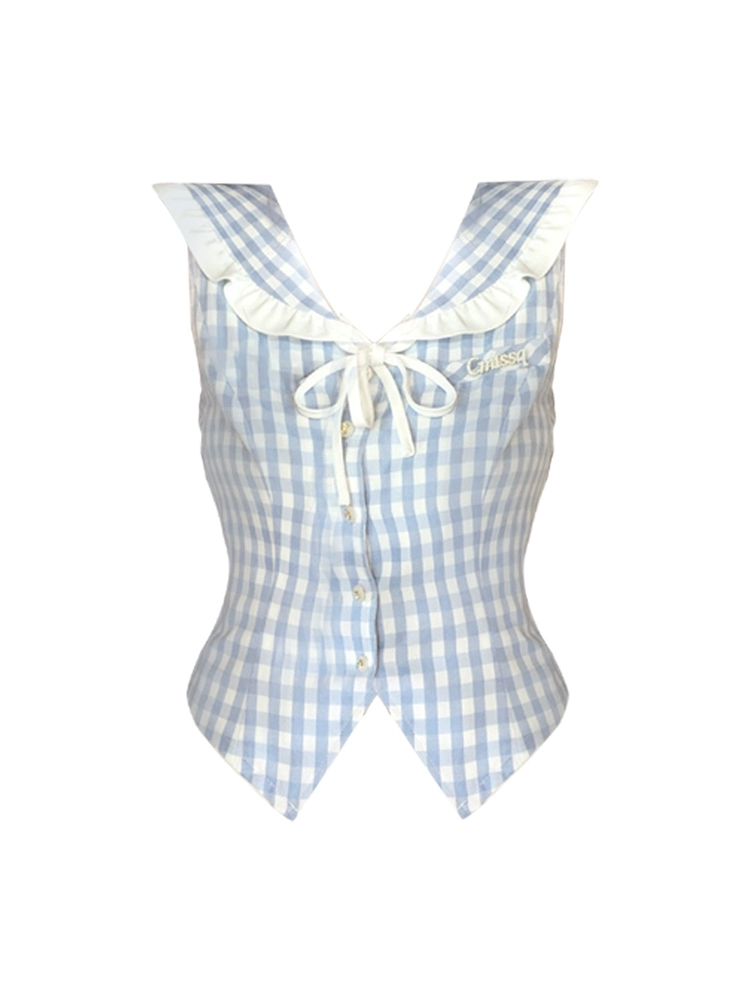 Spot girls navy collar plaid top shirt