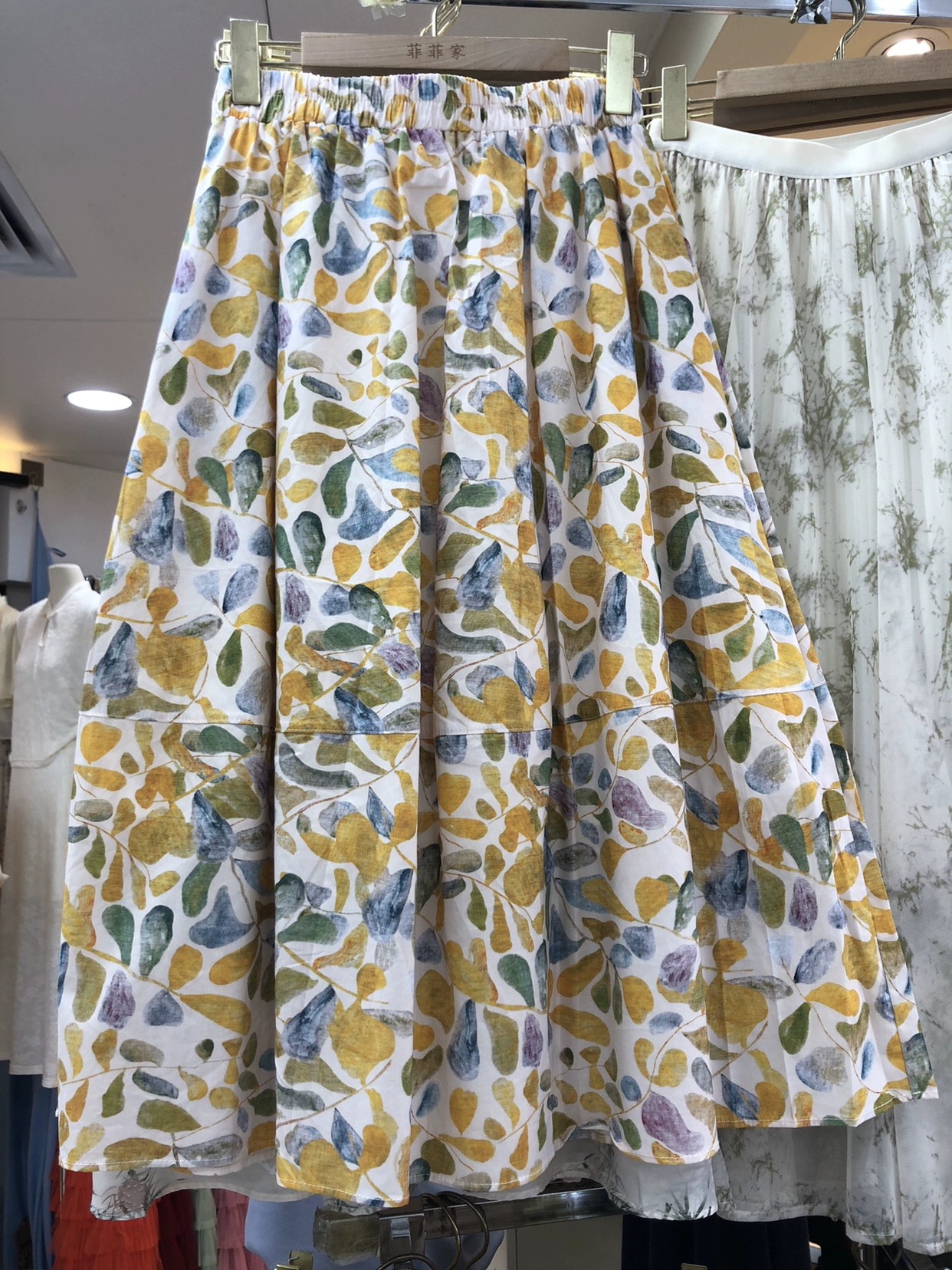 Side pocket spring and summer mid-length A-line skirt with oil painting print