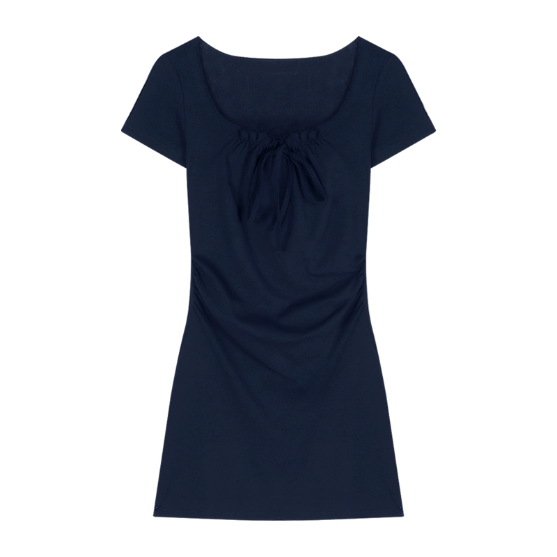 Women’s summer navy blue figure-flattering short-sleeved dress