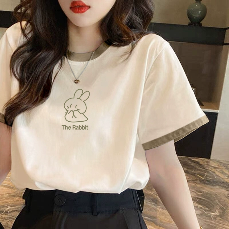 Small fresh fruit green stitching Korean style short-sleeved T-shirt