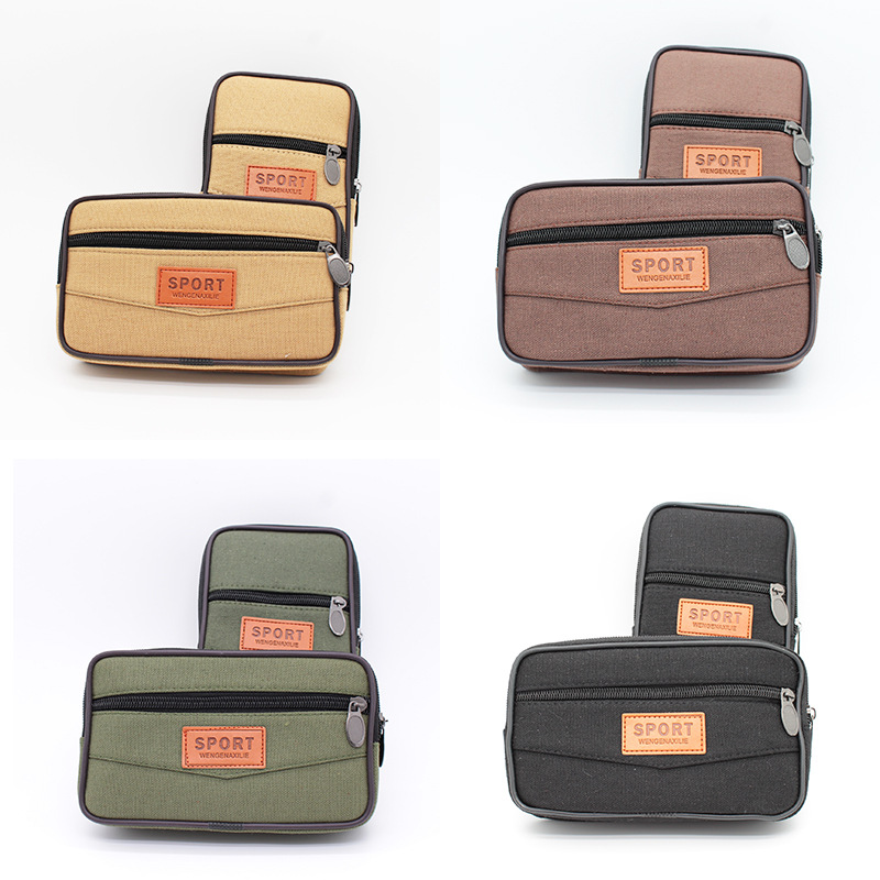 New 7-inch canvas waist bag for the elderly wearing belt coin purse horizontal and vertical zipper construction site waist bag factory wholesale