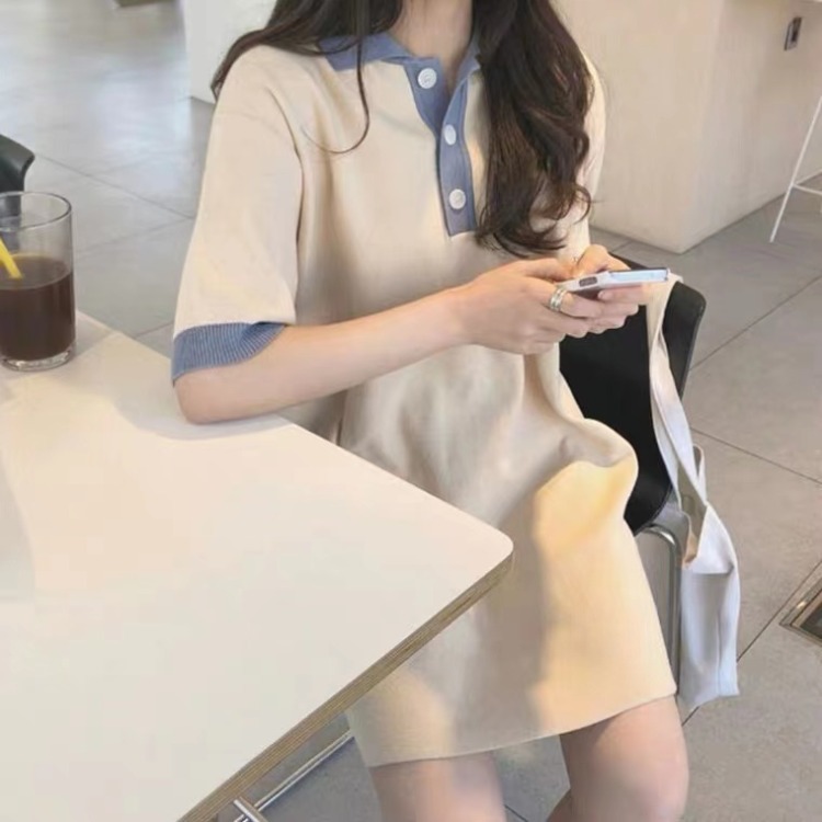 Ice Silk knitted dress women’s 2020 Summer new Polo shirt French slimming elegant thin Western style midi dress