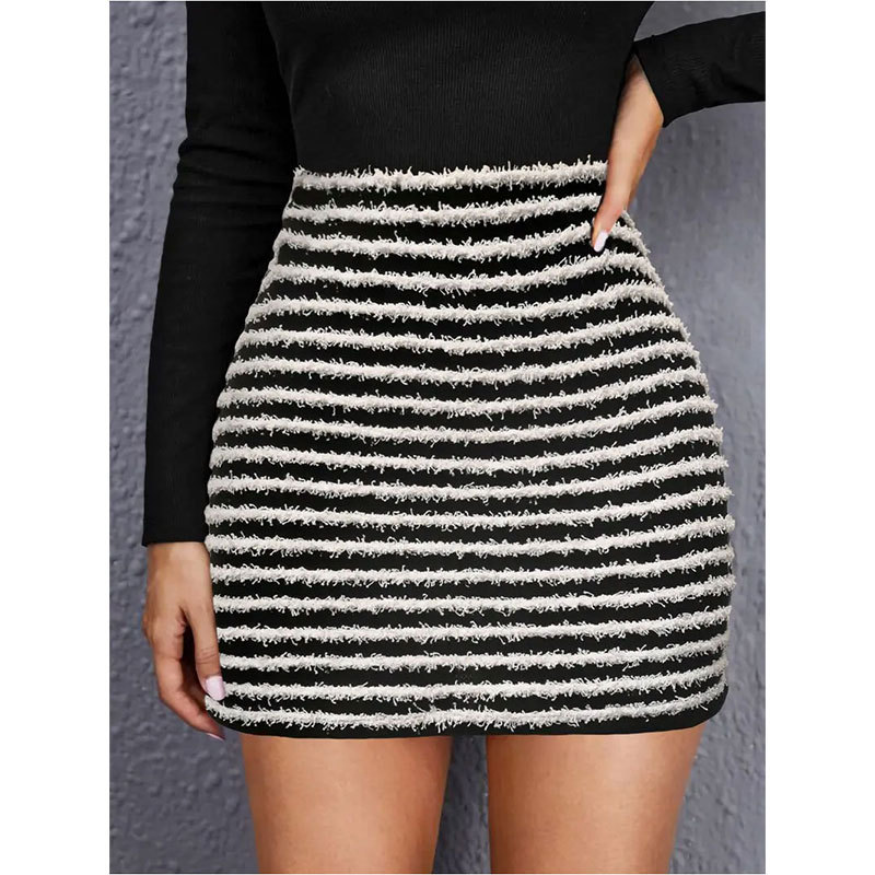 New cross-border European and American women’s tassel sexy knitted striped hip skirt hot girl pure desire style short skirt summer Women