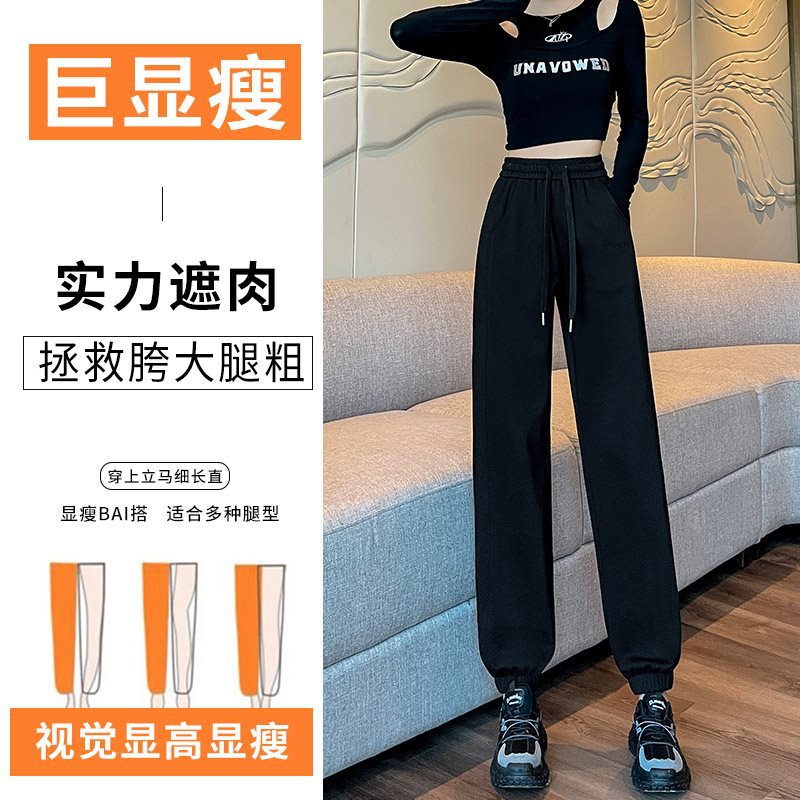 Leg 2024 Casual Pants New Style Sweatpants Sports Pants Women’s Spring and Autumn Grey Thin Summer Small Western Style Straight Pants
