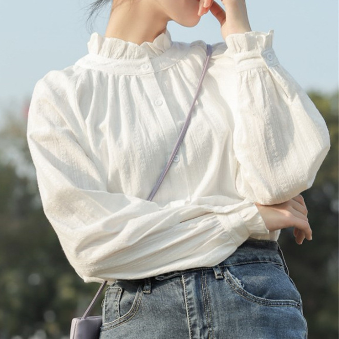 Ear-rimmed Shirt Women’s Design Sense Niche Spring New White Long-sleeved Shirt Inner Base Top